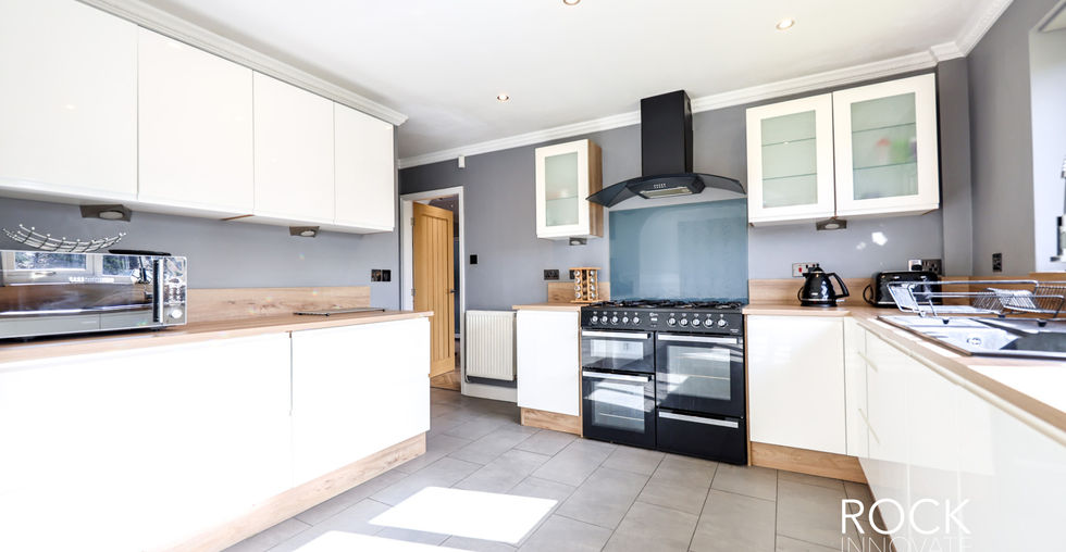To the fore, you will find a spacious block-paved driveway with secure walls surround and gate leading to the side entrance gate.