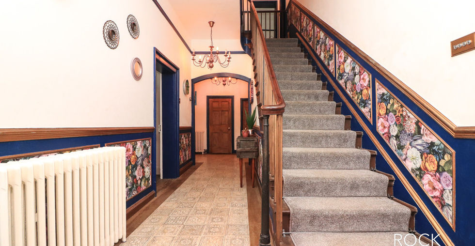 FORMAL HALLWAY With an original staircase leading off to the first floor landing, column radiator, beautifully tiled floor with oak tiled surround, open access to hallway snug, doors to:
