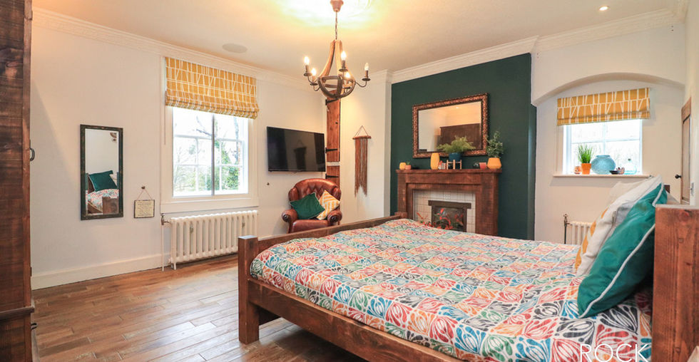 BEDROOM SIX 16' 0" x 15' 0" (4.89m x 4.59m) Having a feature cast fireplace, secondary glazed sash window to the front, secondary glazed window overlooking the garden, ceiling downlighters, air conditioning, column radiator.